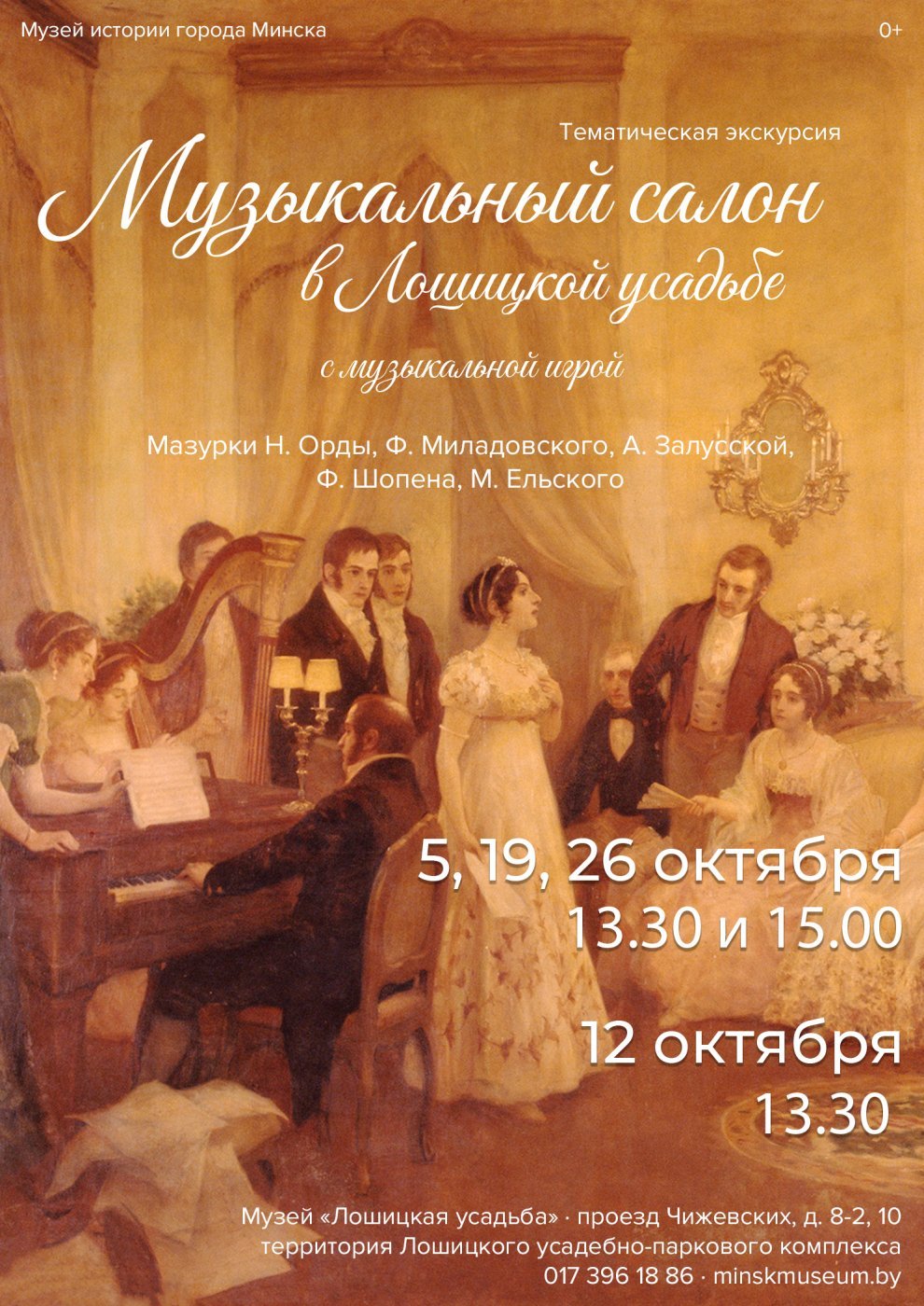 Музей «Лошицкая усадьба», филиал ГУ «Музей истории города Минска», приглашает на экскурсии «Музыкальный салон в Лошицкой усадьбе» с музыкальной игрой.
